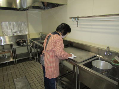 | 2022年12月8日(木) 「食堂」業務 食堂の「大掃除」をしていました(^o^)丿 分解できる部品を全て外し、しつこい「油汚れ」など根気よく清掃しました(^J^) 寒いので防寒使用で頑張っていました(^<^) 4 |