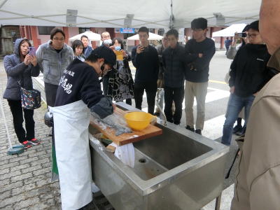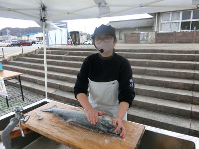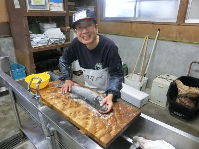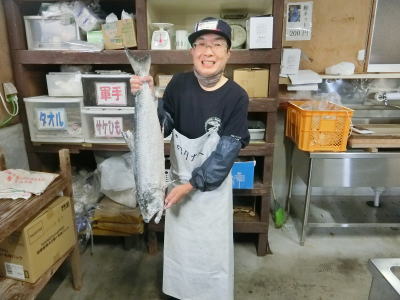 | 2025年11月9日(日) 「誘客推進」業務 「イヨボヤ会館」で「鮭の日イベント」が開催されました(^o^)丿 「重さ当てクイズ」に使用した「生鮭」を「塩引き鮭」に加工しました(^J^) 今回は「4.0Kg」でした(^<^) 当たった方は「酒びたし」をゲットしました(抽選で3名) 3 |