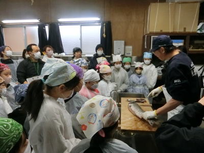 | 2025年11月11日(火) 「伝統文化」業務 「越後村上三ノ丸流鮭塩引き道場」のお手伝いに行きました(^o^)丿 今回は地元「村上小学校4年生」の皆様に教えました(^o^)丿 ゆるキャラ「せなみん」も応援に駆け付けてくれました(^o^) 1回目は「1組」で「高橋」師範が、2回目の「2組」を私が担当しました(^<^) ※NST様のニュース 4 |