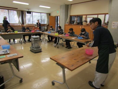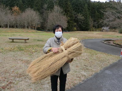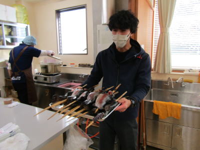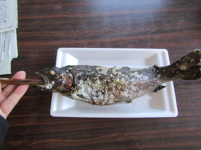 2025年11月30日(日) 「伝統文化」業務 「川魚」で「保存食」を試作します(^o^)丿 「ニジマス」に塩をして、「トチの葉」で包んで「ワラ」で巻きます(^J^) 清水につけてから吊るして乾燥させます(^<^) 3 |