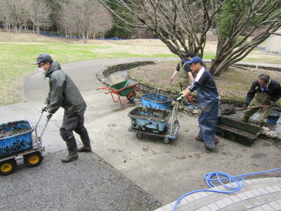 | 2025年4月10日(木) 「管理運営」業務 「池の大清掃」をしました(^o^)丿 「各施設」から「応援勤務」して頂きました(^J^) 「辻澤」新局長も参加されました(^J^) 「イヨボヤ会館」からは「胴長」、「オケ」、「台車」、「洗浄機」等の沢山の道具を準備して頂きました(^<^) 3.5 |