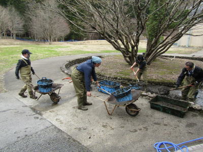 2025年4月9日(水) 「管理運営」業務 明日、「池清掃」をする予定です(^o^)丿 「水の通路」を作り、少しでも水を抜きます(^<^) 出口に貯まった土を取り除くと、水が流れて行きました(^o^) 3.5 |