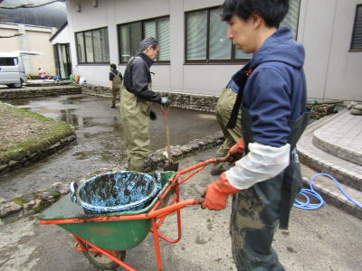 ![]() 泥をすくう |