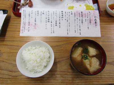 ![]() ご飯(岩船産コシヒカリ)、お味噌汁(自家製味噌) |