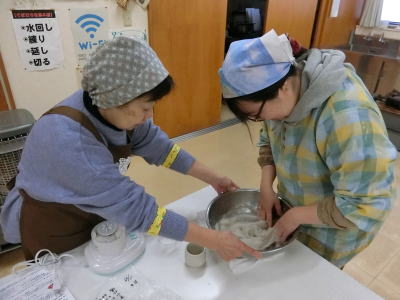 2026年1月17日(土) 自主事業」業務 「18日(日)」開催の「冬まつり」の準備をしています(^o^)丿 食堂で提供される「トン汁」の準備をしていました(^J^) 具材の「コンニャク」を手作りします(^<^) 「コンニャク」作りで培った経験を十分に活かします(^◇^) 3 |