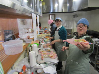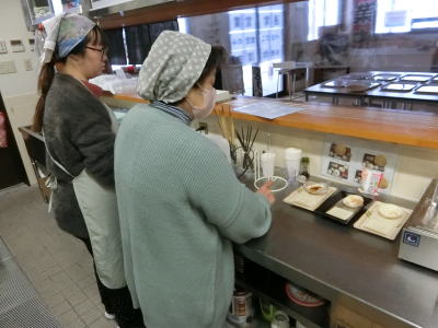 | 2026年1月8日(木) 自主事業」業務 「お料理」品の「試作」を作りました(^o^)丿 「冬まつり」の時に「やまびこ食堂」で提供する予定です(^J^) 「餃子の皮」を焼いて「お皿」代わりに使うそうです(^<^) 焼き時間などを調整していました(^o^) 3 |
