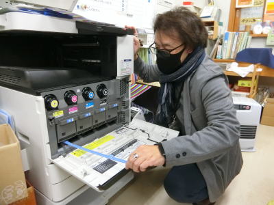2026年1月28日(水) 「管理運営」業務 「コピー機」の「定期点検」に来られました(^o^)丿 最近、印刷時に「細いスジ」が出るようになった事を伝えました(^J^) 「トナーの汚れ」が原因でした(^<^) 備え付けの「清掃道具」の使い方を習いました(^◇^) 3.5 |